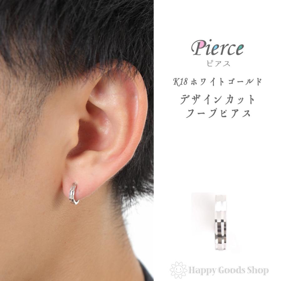 K14 フープ ピアス デザイン カット シンプル ホワイトゴールド 片耳 1個 レディース メンズ 人気 おしゃれ かっこいい アクセサリー 送料無料 ハッピーグッツショップ 通販 Paypayモール